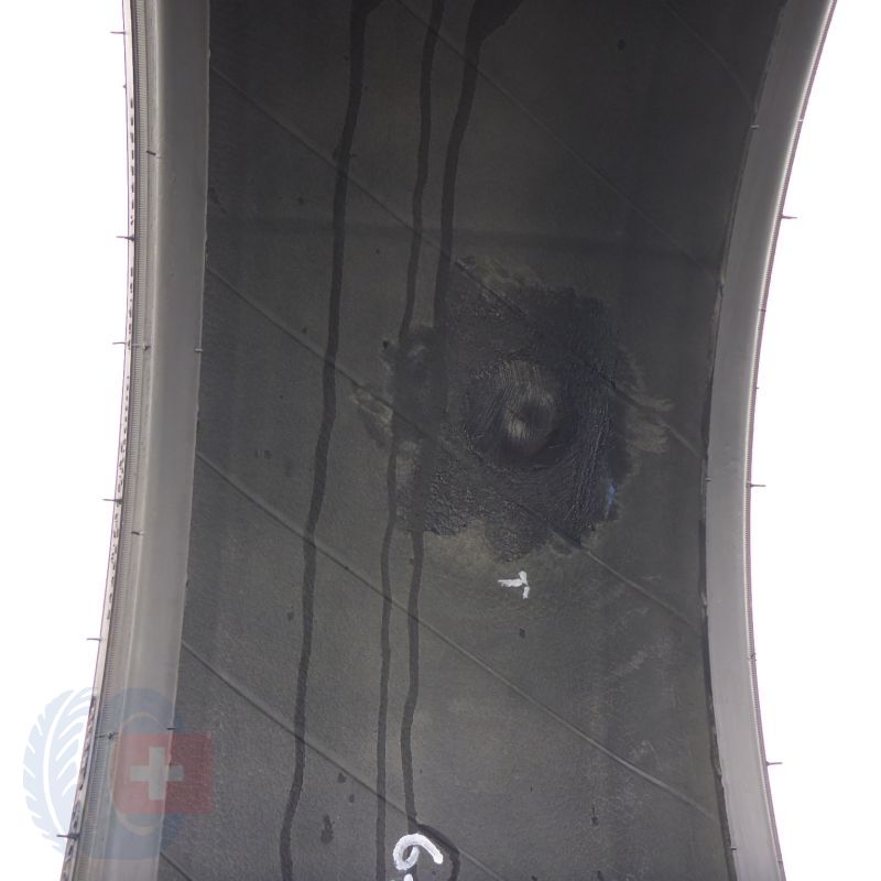 Ein Reifen ist in einer Fachwerkstatt professionell geflickt worden.