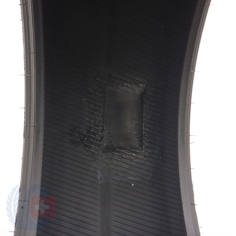Ein Reifen ist in einer Fachwerkstatt professionell geflickt worden.